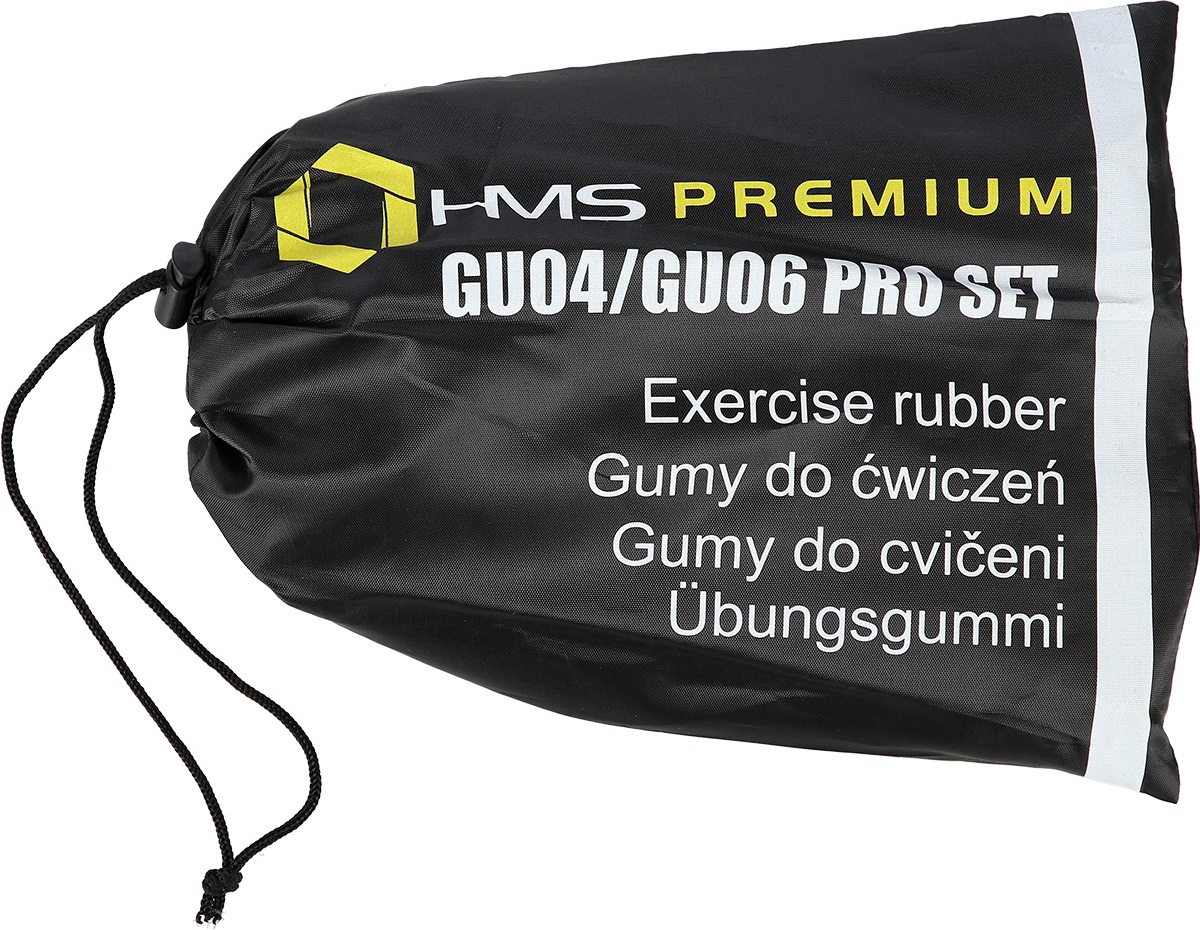GU04 - GU06 PRO SET HMS PREMIUM to zestaw specjalistycznych gum, wykorzystywanych w szczególności w sporcie wyczynowym, a dokładniej w przygotowaniu motorycznym. Główną zaletą zestawu jest jego trwałość. Gwarantuje ją wysoka jakość materiałów wykorzystanych podczas produkcji.