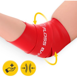 Rehabilitacyjna taśma do flossingu FLOSS BAND to rodzaj specjalistycznej gumy służącej do usprawniania pracy stawów. Działa stymulująco i regenerująco na konkretne partie ciała i przyczepy mięśniowe. Wystarczy ciasno owinąć taśmą oporową staw lub grupę mięśni, a następnie wykonać ćwiczenia w pełnym zakresie ruchu. Do tego guma doskonale sprawdzi się przy treningu okluzyjnym i ruchach aktywno-pasywnych. Taśma kompresyjna 4FIZJO pomaga: