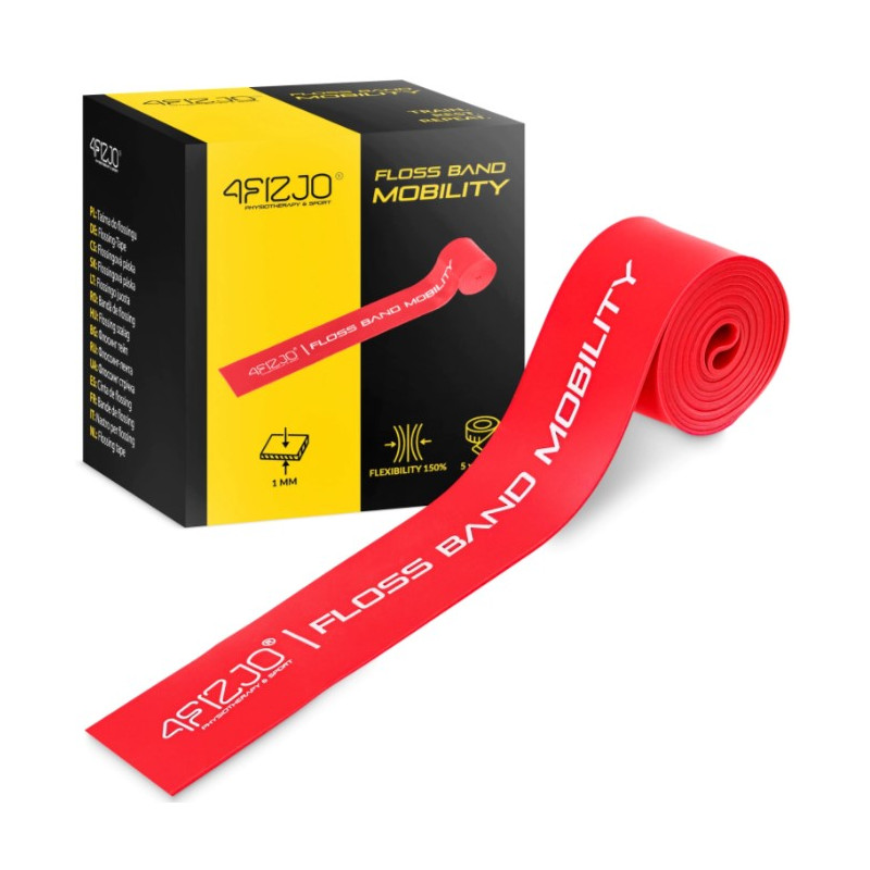 • FLOSS BAND 4FIZJO o grubości 1 mm przeznaczony jest m.in. na staw łokciowy, staw skokowy czy nadgarstki. Taśmy do terapii kompresyjnej zapewniają bezpieczeństwo stosowania, dając maksymalny komfort podczas ćwiczeń.