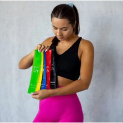 Taśmy do ćwiczeń Mini Power Band wykorzystywane są do wzmacniania mięśni i mobilizacji stawów. Zostały stworzone z najwyższej jakości lateksu, który ma dużą wytrzymałość na rozciąganie. Gumy zapewniają progresywny opór (im wyższy stopień naciągnięcia, tym większy opór) i umożliwiają trening całego ciała. W zestawie znajduje się 5 gum o różnej sile oporu, dzięki czemu można dobrać je indywidualnie do aktualnych potrzeb. Wykorzystywane są podczas treningu w celu urozmaicenia lub aktywacji mięśni przed właściwymi ćwiczeniami.