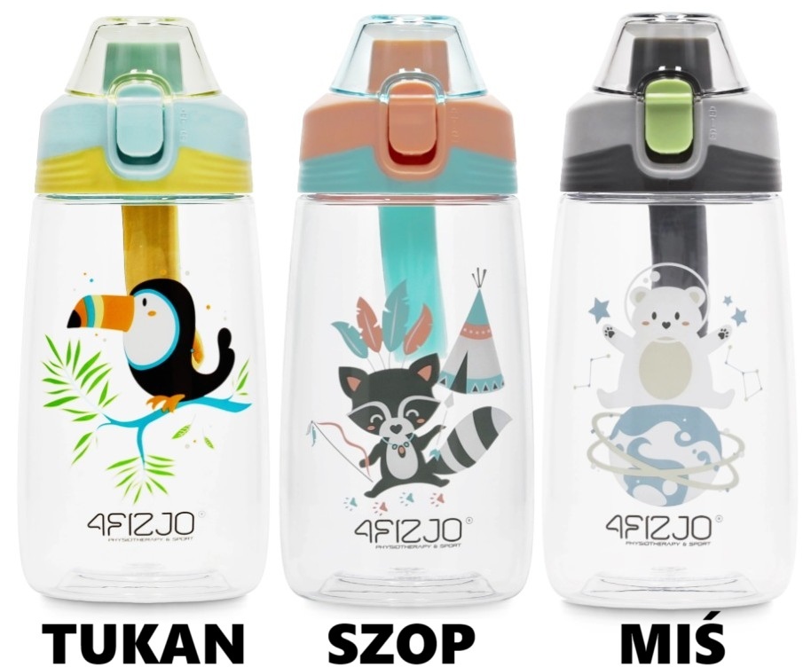 Lekka, szczelna, kolorowa – idealna dla twojego dziecka do szkoły, na wycieczkę czy trening. Tobie pozwoli kontrolować ilości wody wypijanej przez twoją pociechę, a twoje dziecko zachęci do picia. Idealne połączenie, prawda? Potrzebujesz dodatkowych powodów, by wybrać butelkę na wodę dla dziecka 4FIZJO? Co powiesz na zabezpieczenie pokrywki, wygodny ustnik i praktyczny uchwyt? Materiał, z którego wykonaliśmy butelkę, też nie jest przypadkowy. To tritan – lekkie, trwałe i bezpieczne tworzywo nowej generacji. Na zakończenie mamy kolorowe wzory z ulubionymi zwierzątkami dzieci. Brzmi dobrze?
