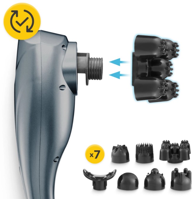 ▶️ Głowicę klasyczną – jest to gładka i uniwersalna końcówka. Przeznaczona do głębokiego masażu mięśni karku, barków, pleców oraz miejsc z największym spięciem mięśni.