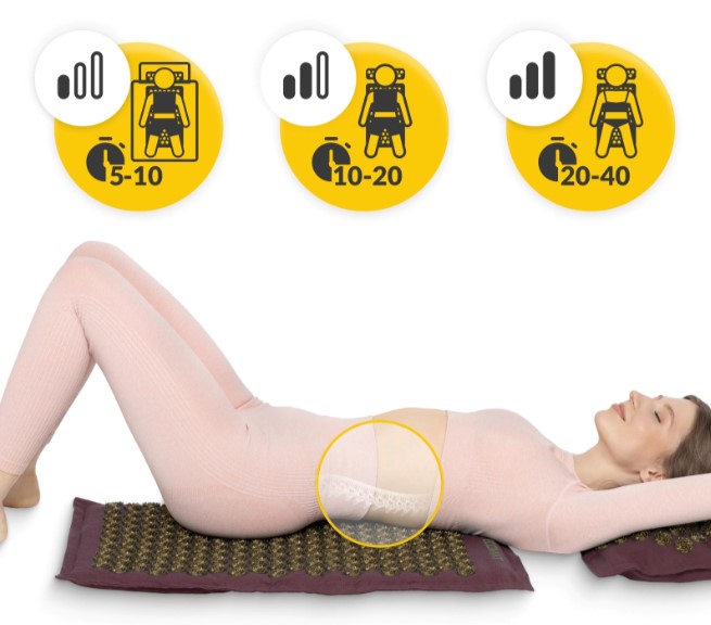 ✅ Średniozaawansowani mogą bez obaw rozłożyć matę na podłodze i ułożyć się na niej w ubraniu. Dobrym rozwiązaniem jest położenie maty na łóżku i masaż akupresurowy w bieliźnie.