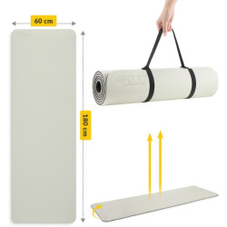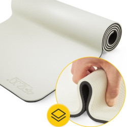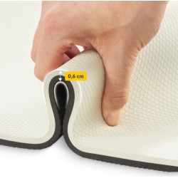 Mata do jogi i pilatesu jest wykonana z trwałego termoplastycznego kauczuku TPE. Ten wysokogatunkowy materiał jest bezpieczny dla środowiska. Do tego cechuje się lekkością, doskonałą przyczepnością i świetnymi właściwościami antypoślizgowymi. Nie będzie przesuwał się, zwijał czy rolował po podłodze na sali treningowej, czy w domu.