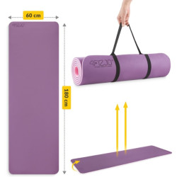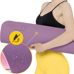 Mata do jogi i pilatesu jest wykonana z trwałego termoplastycznego kauczuku TPE. Ten wysokogatunkowy materiał jest bezpieczny dla środowiska. Do tego cechuje się lekkością, doskonałą przyczepnością i świetnymi właściwościami antypoślizgowymi. Nie będzie przesuwał się, zwijał czy rolował po podłodze na sali treningowej, czy w domu.