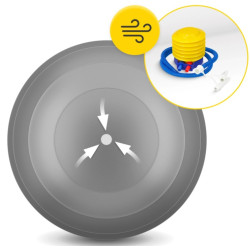 2️⃣ Napompuj piłkę do 80% jej objętości – przed pierwszym użyciem piłki pozostaw ją napompowaną na 24 godziny, aby się rozciągnęła i mogła nabrać odpowiednią średnicę i kształt. Wysokiej jakości piłki wykonane są z grubego materiału, który potrzebuje czasu na rozciągnięcie.