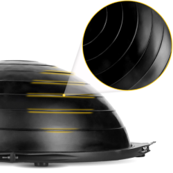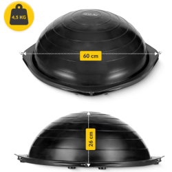 Półpiłka Balance Ball 4FIZJO to połączenie połowy piłki gimnastycznej z platformą do balansowania. Taka budowa to szereg korzyści – obie strony umożliwiają przeprowadzenie urozmaiconego treningu. Półokrągłą kopułę i podstawę wykonano z jakościowego tworzywa zapewniającego wytrzymałość. Antypoślizgowe rozwiązania, jak nóżki czy specjalne owalne linie, zapewniają bezpieczeństwo podczas ćwiczeń. Chronią przed poślizgnięciem się oraz zapobiegają przesuwaniu się półpiłki w trakcie aktywności fizycznej. W zestawie z trenerem równowagi znajdują się 2 odpinane ekspandery i pompka.