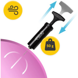 2️⃣ Napompuj piłkę do 80% jej objętości – przed pierwszym użyciem piłki pozostaw ją napompowaną na 24 godziny, aby się rozciągnęła i mogła nabrać odpowiednią średnicę i kształt. Wysokiej jakości piłki wykonane są z grubego materiału, który potrzebuje czasu na rozciągnięcie.
