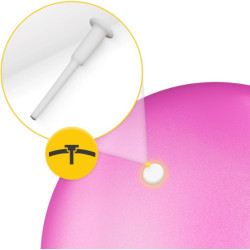 3️⃣ Dopompuj piłkę do maksymalnej średnicy – po 24 godzinach napełnij piłkę do 100% objętości i zamknij dokładnie otwór białą zatyczką.