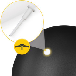 ▶️ Wypompowanie piłki – jeżeli chcesz spuścić powietrze z piłki, wystarczy, że podważysz i wyciągniesz białą zatyczkę. Możesz sobie pomóc, siadając na piłce.