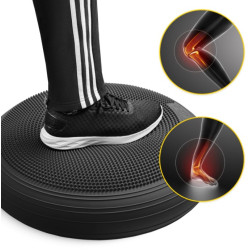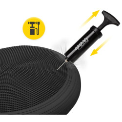 Aby poduszka działała prawidłowo, nie może być ani zbyt miękka, ani przepompowana. Napompuj ją do takiego stopnia, aby podczas ćwiczeń lub siedzenia nie dotykać podłoża, ale jednocześnie zachować elastyczność umożliwiającą balansowanie. Zbyt duże ciśnienie sprawi, że straci swoje właściwości i przypominać będzie piłkę.