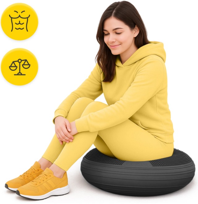 ✅ Wzmacnia mięśnie głębokie i stabilizuje kręgosłup – dzięki niestabilnemu podłożu aktywowane są mięśnie brzucha, pleców i miednicy.
