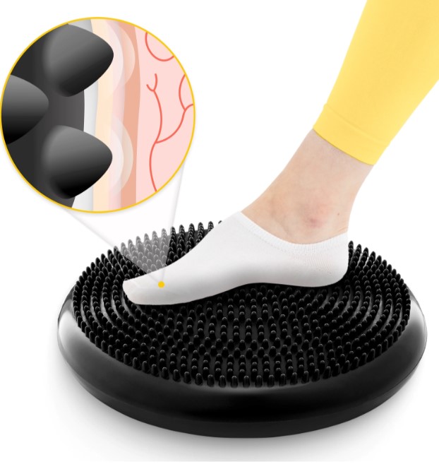 • ✅ Poprawia krążenie – dysk posiada 2 rodzaje powierzchni: z jednej strony gładką z niewielkimi wypukłościami i drugą – masującą i stymulującą z długimi wypustkami, które działają niczym akupresura, przynosząc ulgę zmęczonym stopom.