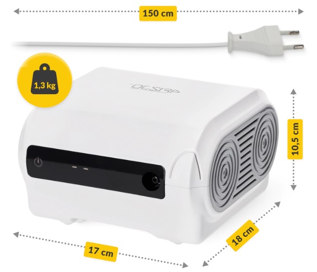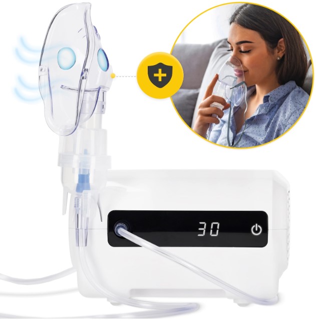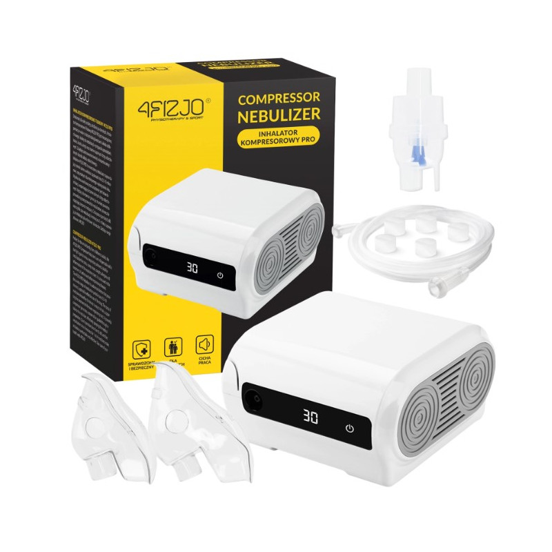 Szybkie i przyjemne inhalacje to teraz nie problem z innowacyjnym nebulizatorem kompresorowym PRO 4FIZJO. Łatwa i bezproblemowa obsługa to zasługa wygodnego dotykowego wyświetlacza. Co więcej, dzięki specjalnej funkcji możesz ustawić czas trwania nebulizacji do nawet 30 minut. Ponadto dzięki prostej konstrukcji inhalatora zarówno dorośli, jak i dzieci będą mogli rozpocząć terapię w kilka minut. Stabilna podstawa, cicha praca oraz długi przewód powietrza o długości 150 cm pozwalają przeprowadzić zabieg w wygodnej dla Ciebie pozycji, czy to na krześle, sofie czy w łóżku.