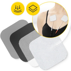Samoprzylepne elektrody do elektrostymulacji TENS i EMS cechują się wysoką jakością wykonania. Bardzo dobre gatunkowo materiały zapewniają równomierne przewodzenie impulsów elektrycznych. Do tego zaletami są miękka warstwa wierzchnia oraz zastosowanie żelu samoprzylepnego, zapewniając wysoką przewodność. Ponadto elektrody 50 × 50 mm 4FIZJO są wielokrotnego użytku.
