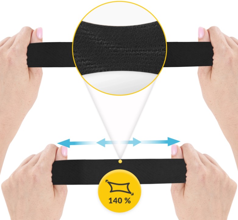 Zaletą tejpów jest to, że nie zawierają uczulającego lateksu. Do tego przepuszczają powietrze, więc skóra nadmiernie się nie poci. Dodatkowo plastry do tapingu 4FIZJO są elastyczne. Rozciągają się do 140% swojej pierwotnej długości. To pozwala na ich odpowiednie napięcie i dopasowanie do kontuzjowanej części ciała.