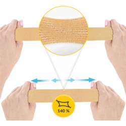 Zaletą tejpów jest to, że nie zawierają uczulającego lateksu. Do tego przepuszczają powietrze, więc skóra nadmiernie się nie poci. Dodatkowo plastry do tapingu 4FIZJO są elastyczne. Rozciągają się do 140% swojej pierwotnej długości. To pozwala na ich odpowiednie napięcie i dopasowanie do kontuzjowanej części ciała.