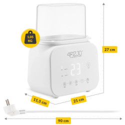 Zaletą podgrzewacza pokarmu 2 w 1 TWIN jest nie tylko jego wielofunkcyjność, ale również budowa. Został wyposażony w dotykowy panel sterowania i elektroniczny wyświetlacz. Model wykonano z trwałego tworzywa sztucznego, które wytrzyma temperatury od -20°C aż do 120°C. Do tego urządzenie jest łatwe w utrzymaniu czystości. Podgrzewacz do butelek 4FIZJO wyróżnia się stylowym i nowoczesnym designem. Co więcej, zajmuje mało miejsca, więc idealnie sprawdzi się w kuchni, salonie czy pokoju dziecka. To z kolei zapewnia komfort i wygodę korzystania w dowolnym momencie.