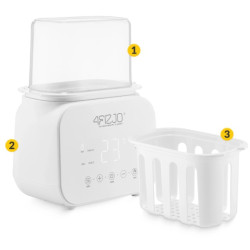 Podwójny podgrzewacz do butelek ze sterylizatorem 4FIZJO to intuicyjny i prosty w obsłudze model z funkcją 4 w 1. Pierwsze dwa tryby to podgrzewanie mleka i jedzenia. Dzięki temu każdy posiłek zachowa smak i wartości odżywcze. Trzecią funkcją jest rozmrażanie, które zapewnia stopniowe odmrożenie bez utraty cennych witamin. Z kolei czwartym trybem jest sterylizacja. Pomaga zachować odpowiednią higienę akcesoriów dziecięcych. Taka szeroka funkcjonalność pozwala na dowolną personalizację ustawień w zależności od potrzeb.
