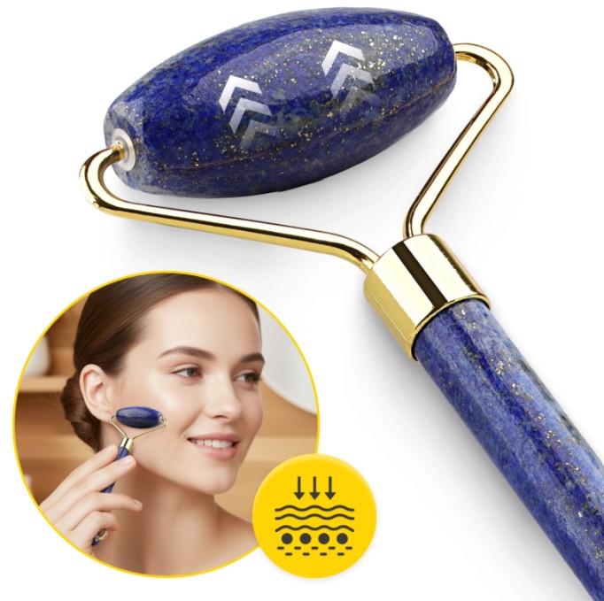 ⭐ Regularne rolowanie twarzy przy użyciu rollera z naturalnego lazuru nie tylko odpręża, ale również zmniejsza opuchliznę, usprawnia wchłanianie kosmetyków do pielęgnacji i poprawia owal twarzy.